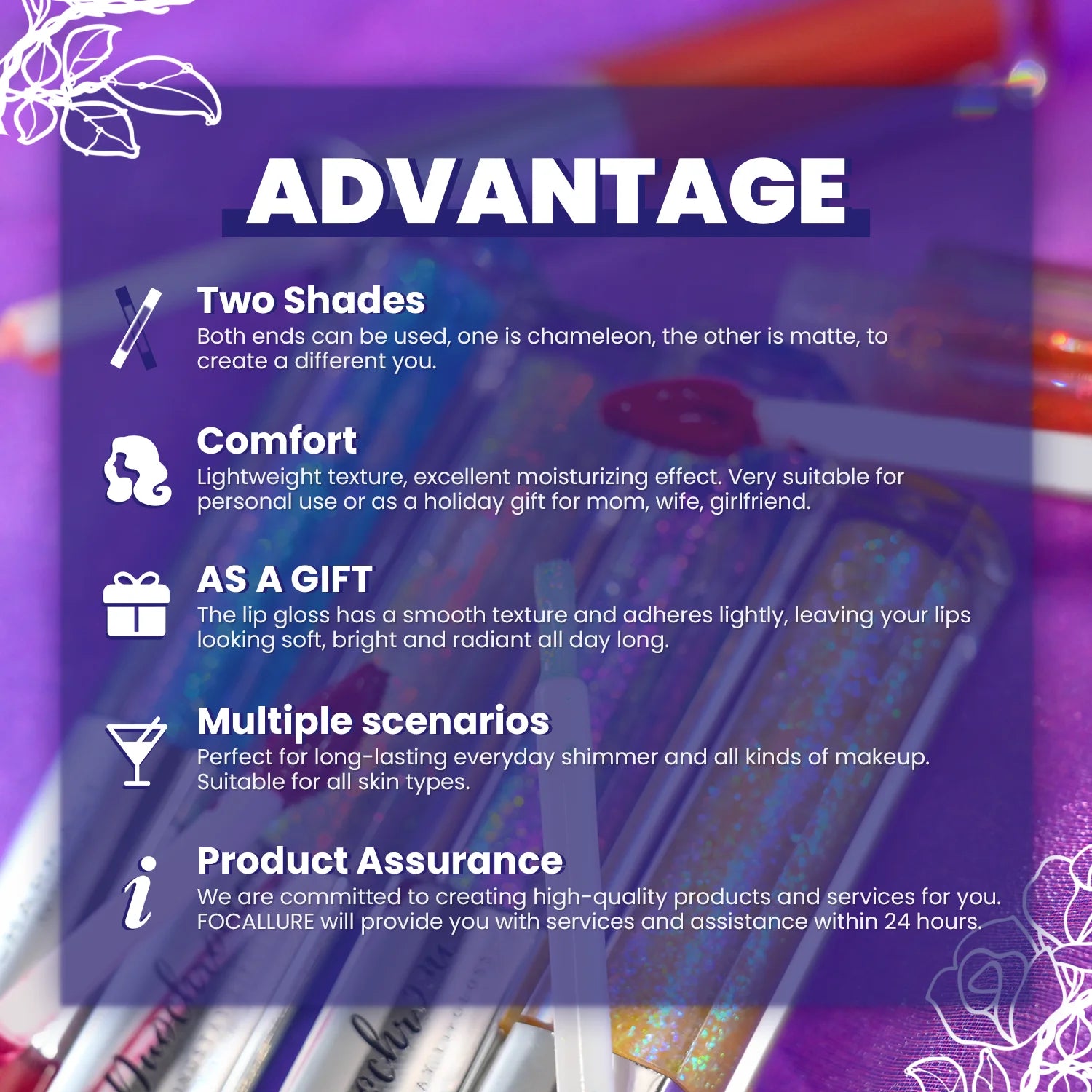 Product Type: 2-in-1 Glitter & Duochrome Lip Gloss
