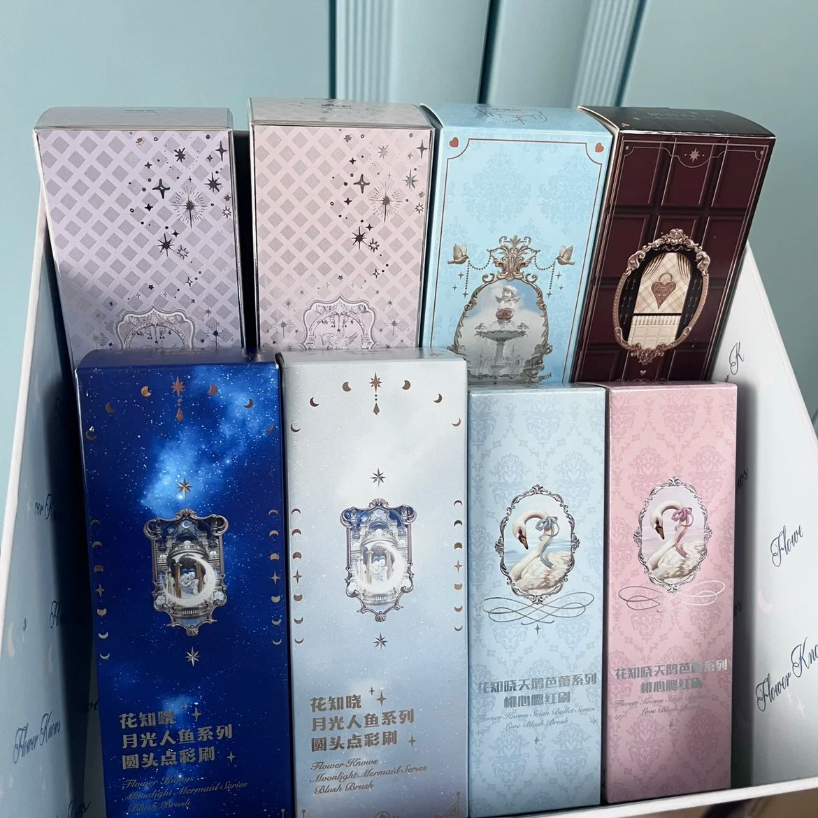 Elevate your makeup routine with the Flower Knows Swan Ballet Moonlight Mermaid Brush Collection, a set of high-quality, vegan, and long-lasting makeup tools designed for flawless application. Perfect for shimmering, glowing, and pearlescent powders, these brushes help you create radiant, professional-level makeup looks effortlessly.